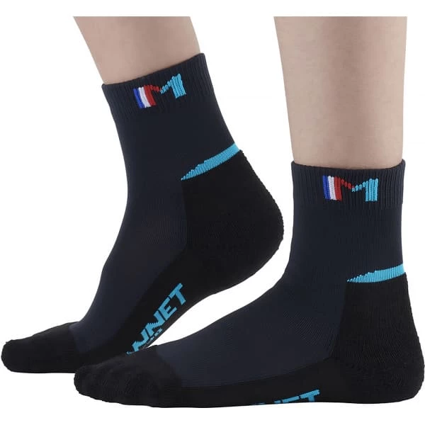 La MID JUNIOR GRIS BLEU est une paire de chaussettes techniques – socquettes haute Middle – pour enfant de chez Monnet appartenant à la gamme Trekking. Son bureau d’étude a créé une large gamme spéciale Trekking pour couvrir tous les besoins liés à des conditions très différentes (montagne, forêt, désert, neige, fort dénivelé positif et négatif, … ).