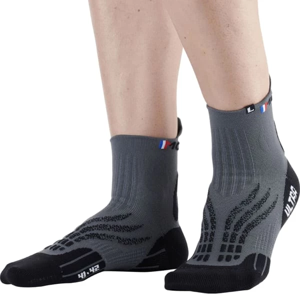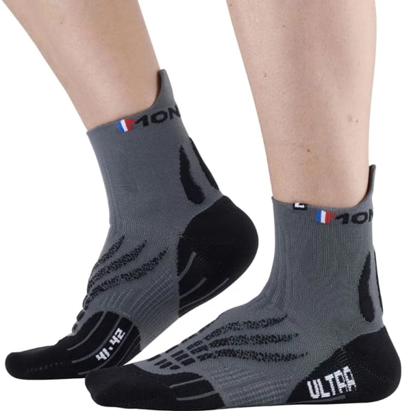 Meilleur prix ❤️ Chaussettes Trail Running MONNET TRAIL RUN ULTRA GREY BLACK 22 Gris / Noir ⌛