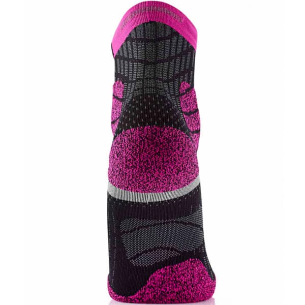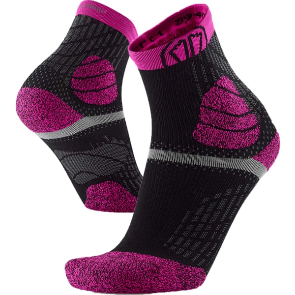 Assurant une bonne protection des pieds, cette chaussette possède trois renforts dont un au niveau de la cheville et l’autre au niveau des orteils. La zone de maintien au niveau de la cheville améliore également la stabilité de la cheville par rapport au talon tout en limitant les blessures. Elle ajoute une bande de grip pour améliorer le contact avec les semelles ainsi qu’une zone d’aération au niveau de la voûte plantaire pour laisser respirer le pied. De plus, la technologie POLYGIENE assure une bonne gestion des odeurs.